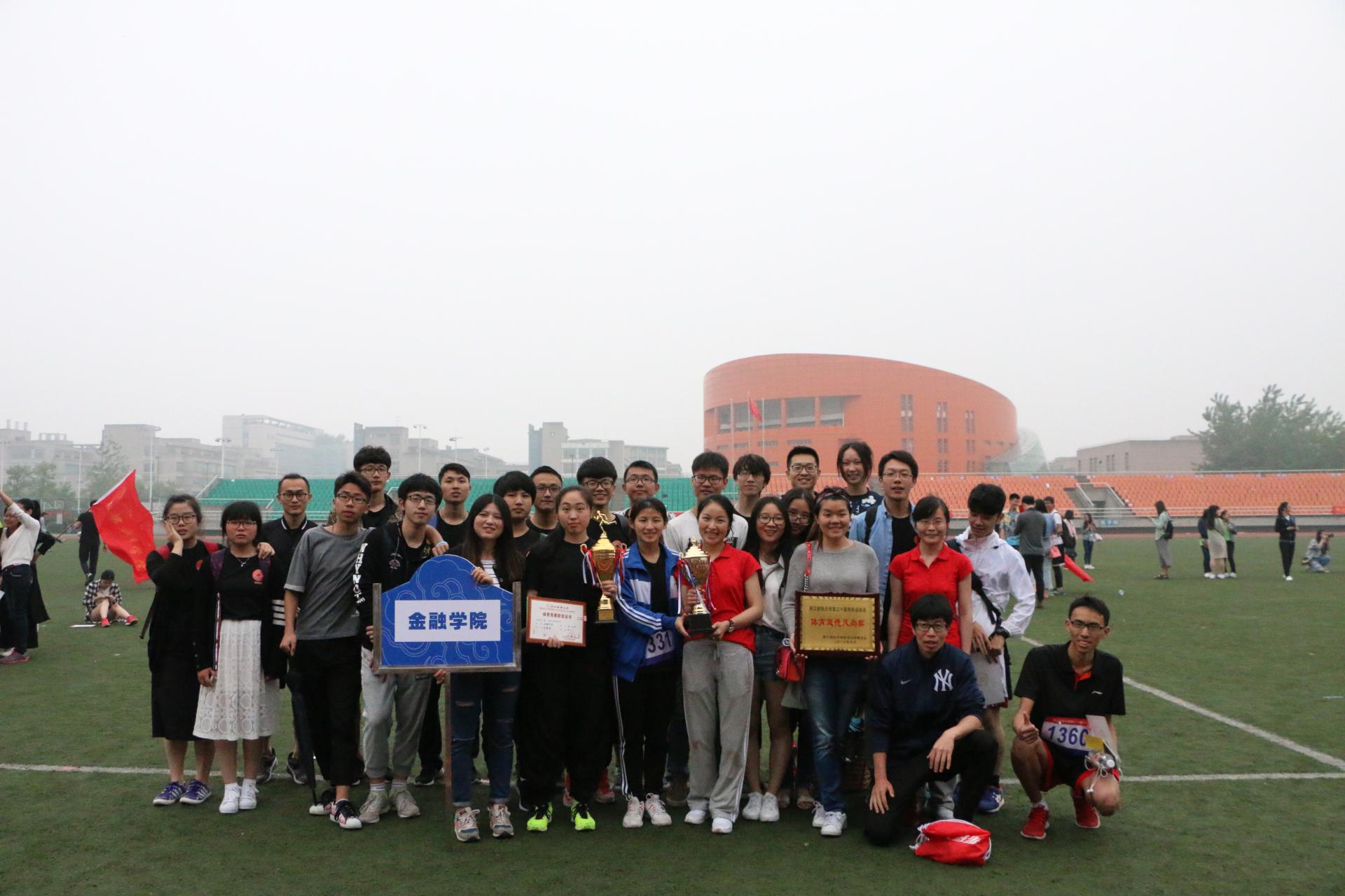 夺得一个又一个奖项:董宇玮、叶关炯分别获得男子五项全能第二名与第四名,李翎、方慧玲分别斩获女子五项全能第二名与第四名。尤其是在团体项目男女混合10*800米中一队、二队均取得了第二名的优异成绩。在4*400米接力赛中,金融更是势如破竹,一队男子组、二队女子组均包揽金牌。