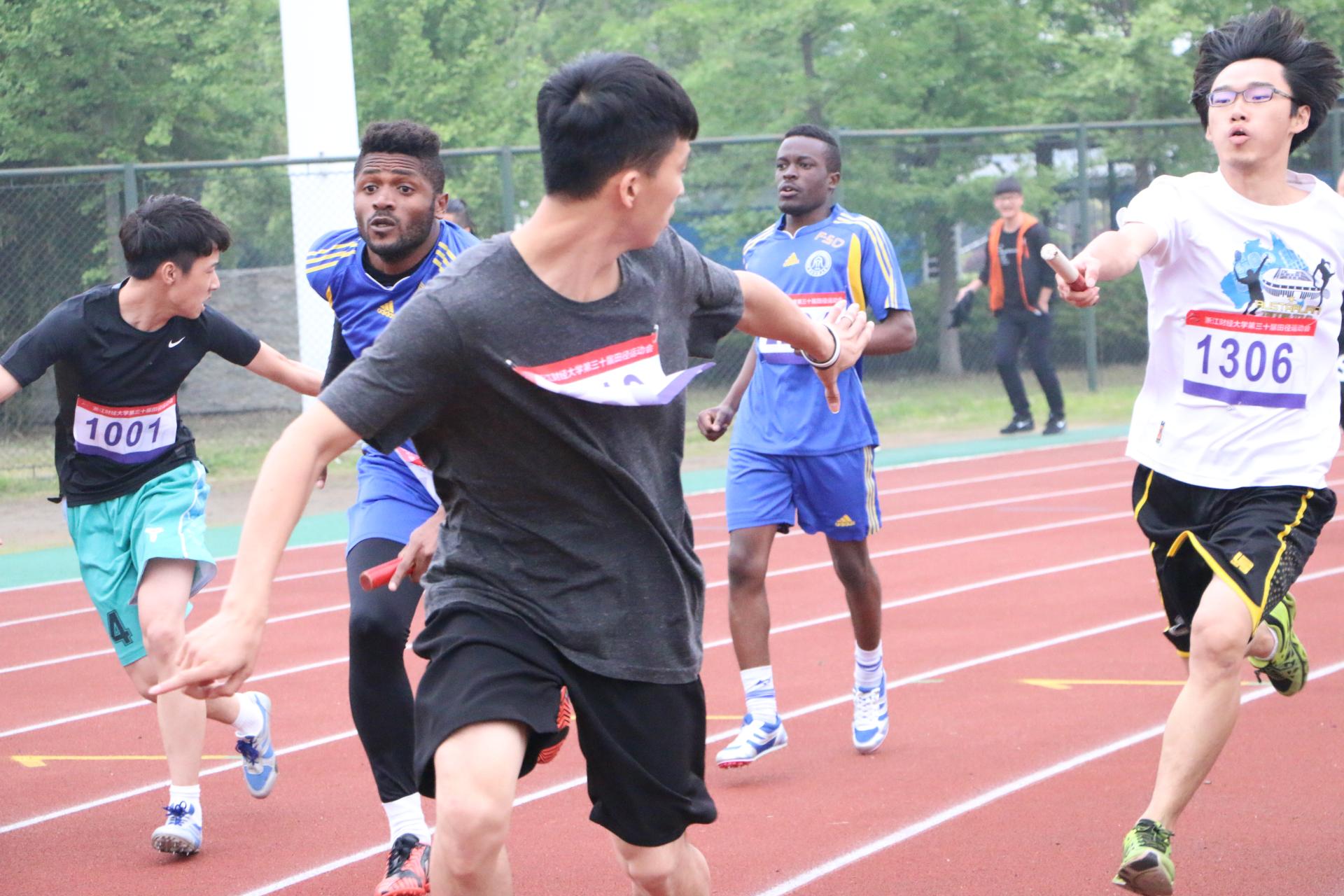 在接下来的比赛中,径赛场上喜报频传:女子跳远顾梦瑶获得第一名的好成绩,男子铁饼候浩然、方韬分别获得第三名和第五名、男子组1500米毕玉贵获得第一名……在团体项目4*100接力赛中男女二队分别斩获第三和第四。运动员们用他们矫健的身姿、昂扬的斗志博得了全场观众的喝彩声。