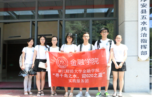 辅导员王伟伟老师带队组成的学生社会实践服务团前往千岛湖,实地考察当地五水共治的实施情况以及其对千岛湖经济的影响。