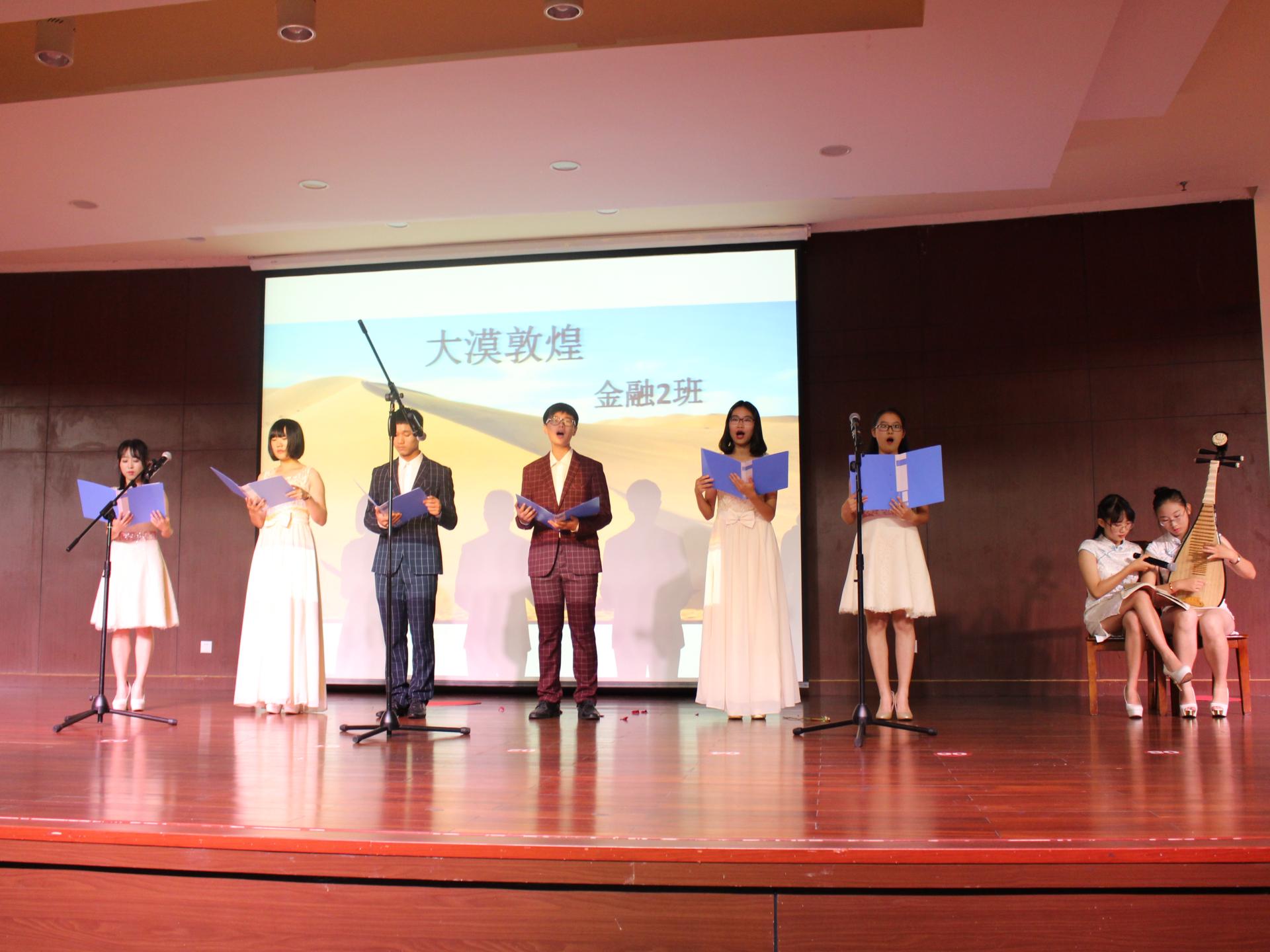 接下来进行的是每个班的才艺展示。以16金融3班的话剧——《雷雨》为始,之后便是16中英金融2班的演讲与红歌演唱,16信管的杯子舞更是把全场的气氛提到高潮。中场进行了每班团课结业证书的颁发。随后,16金融2班的朗诵《大漠敦煌》、16投资班的歌曲《if you》、16金工班的情景剧、16保险班的独唱《莫尼山》、16金融1班的闪光舞、16中英金融1班的《依然爱你》都获得全场观众的一致认可与好评。