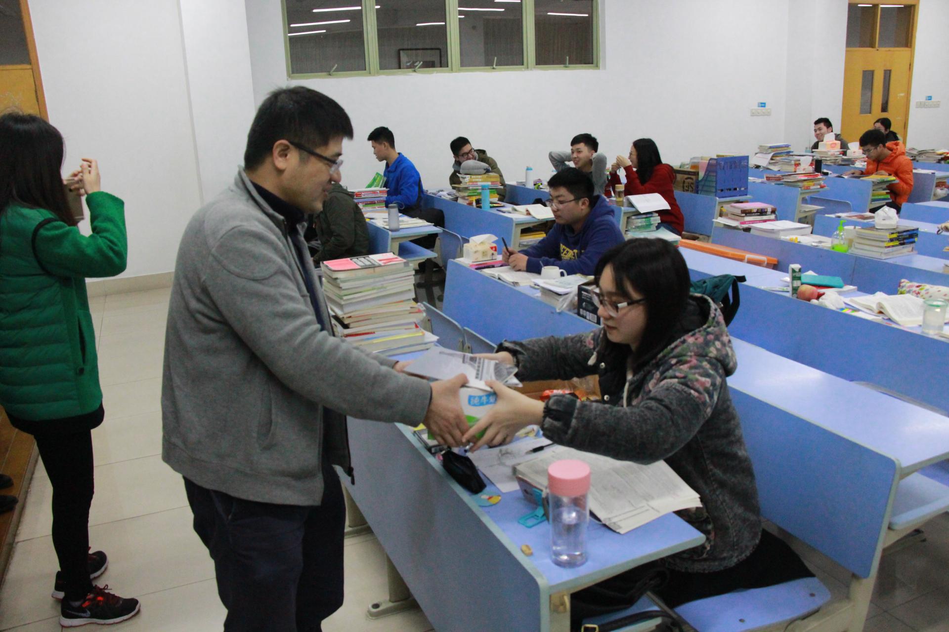 对他们寄予的期望,祝同学们考研顺利,取得好成绩。接着,蔡书记发表讲话,鼓励大家调整心态、注意劳逸结合、坚定信心、积极备考,并同样殷切地送出了希望同学们一切顺利的祝福。随后,陈院长、蔡书记与辅导员向同学们分发了一些慰问品,大家对博彩代理