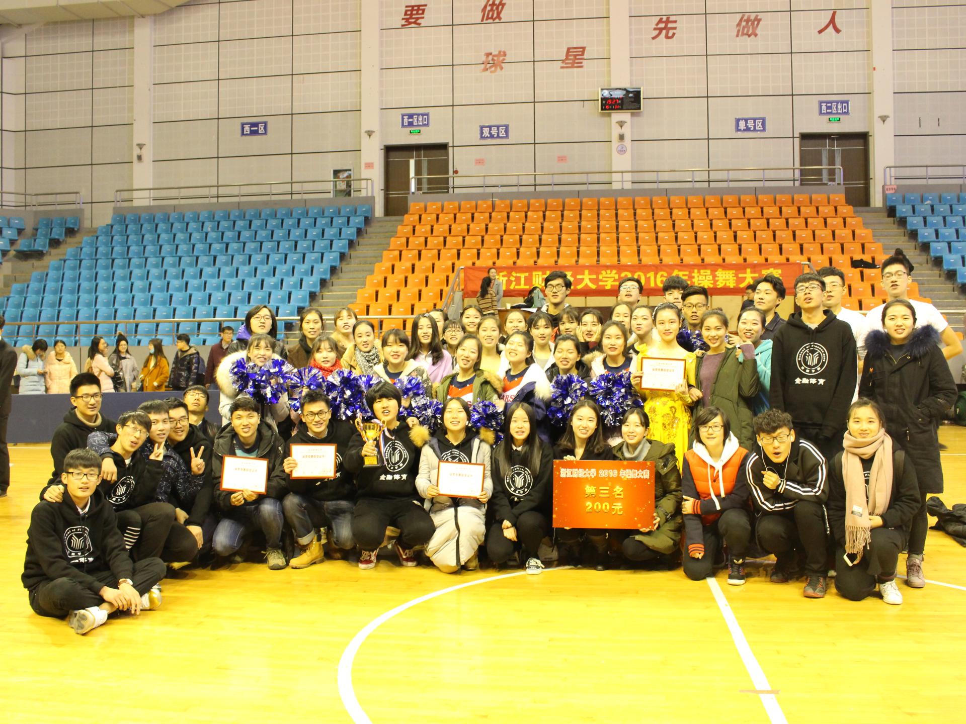 获得单项健身操第六名、体育舞蹈第五名、啦啦操第三名以及团体第三的好成绩。颁奖仪式上,校体军部的老师分别为三项单项比赛的前八名和团体前三颁发了奖项。