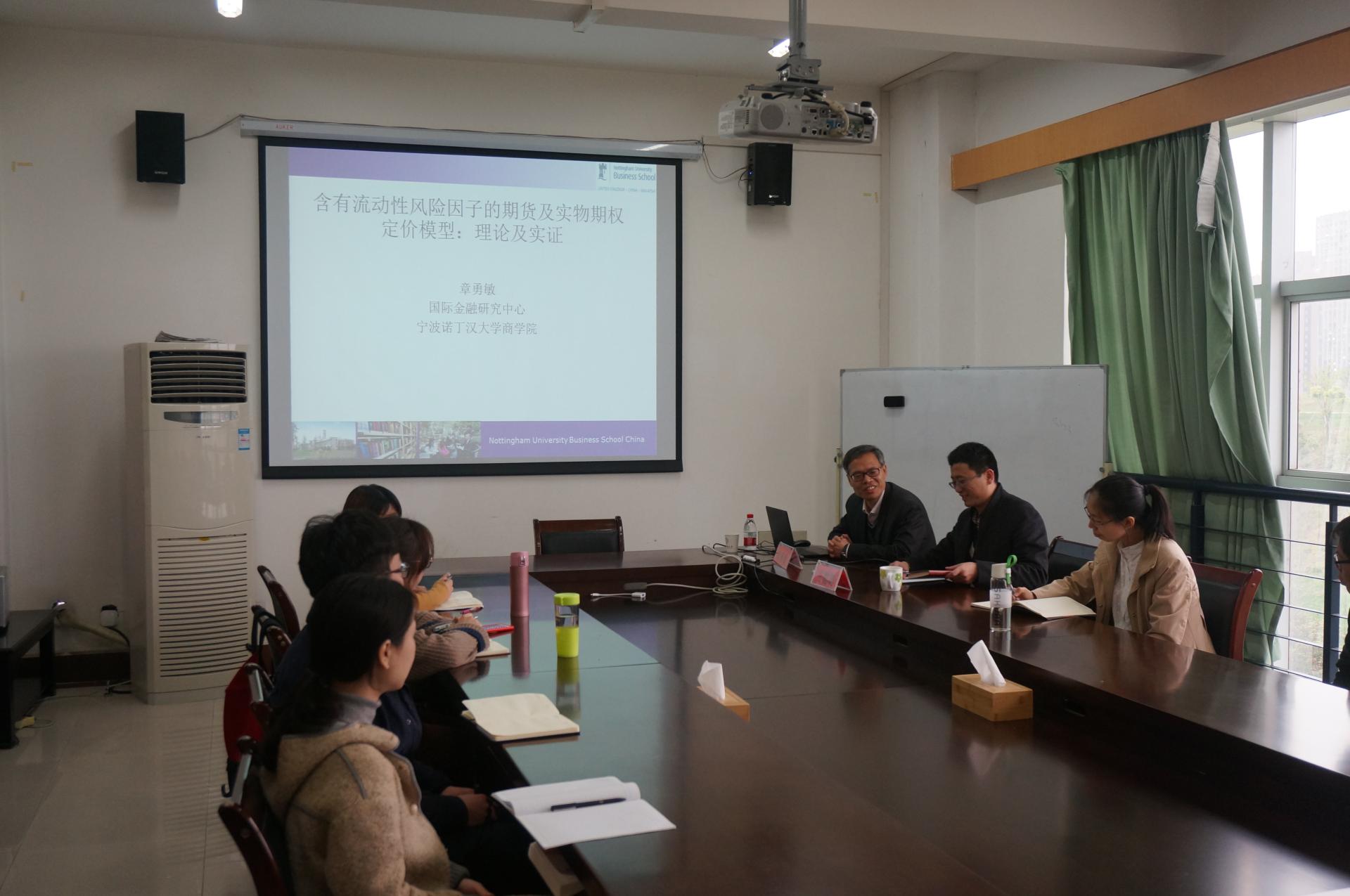 师生的视野,使大家对含有流动性风险因子的期货及实物期权定价模型有了进一步的了解。现场师生兴致高涨,章勇敏教授与听众进行了亲切互动,热情洋溢而细致地解答了师生们提出的诸多问题,充分达到了本次学术讲座的目的。我们也由衷的期待下一次的学术讲座。