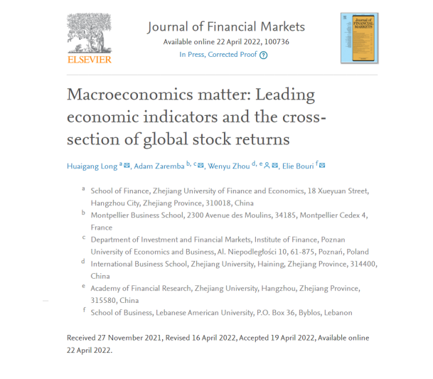 Long, H., Zaremba, A.& Zhou, W.et al. Macroeconomics matter: Leading economic indicators and the cross-section of global stock returns[J]. Journal of Financial Markets, 2022: 100736。