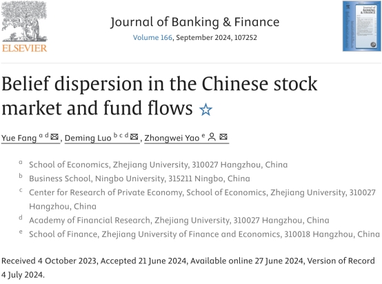教授罗德明的合作论文“Belief dispersion in the Chinese stock market and fund flows”于金融学领域权威学术期刊、ABS 3星期刊、博彩代理