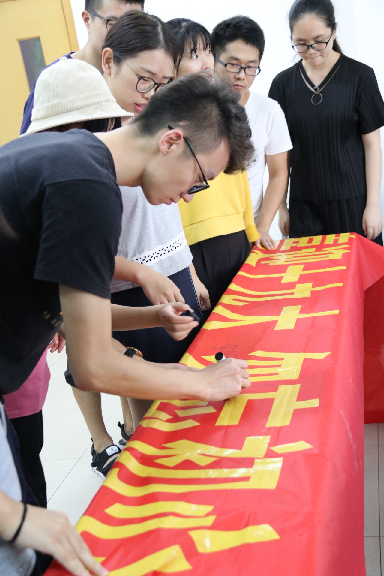 观看结束后,党员们进行了“青春喜迎十九大,勿忘初心跟党走”横幅签字仪式,以实际行动作出承诺,从小事、实事做起,以优异的成绩迎接党的十九大的召开。