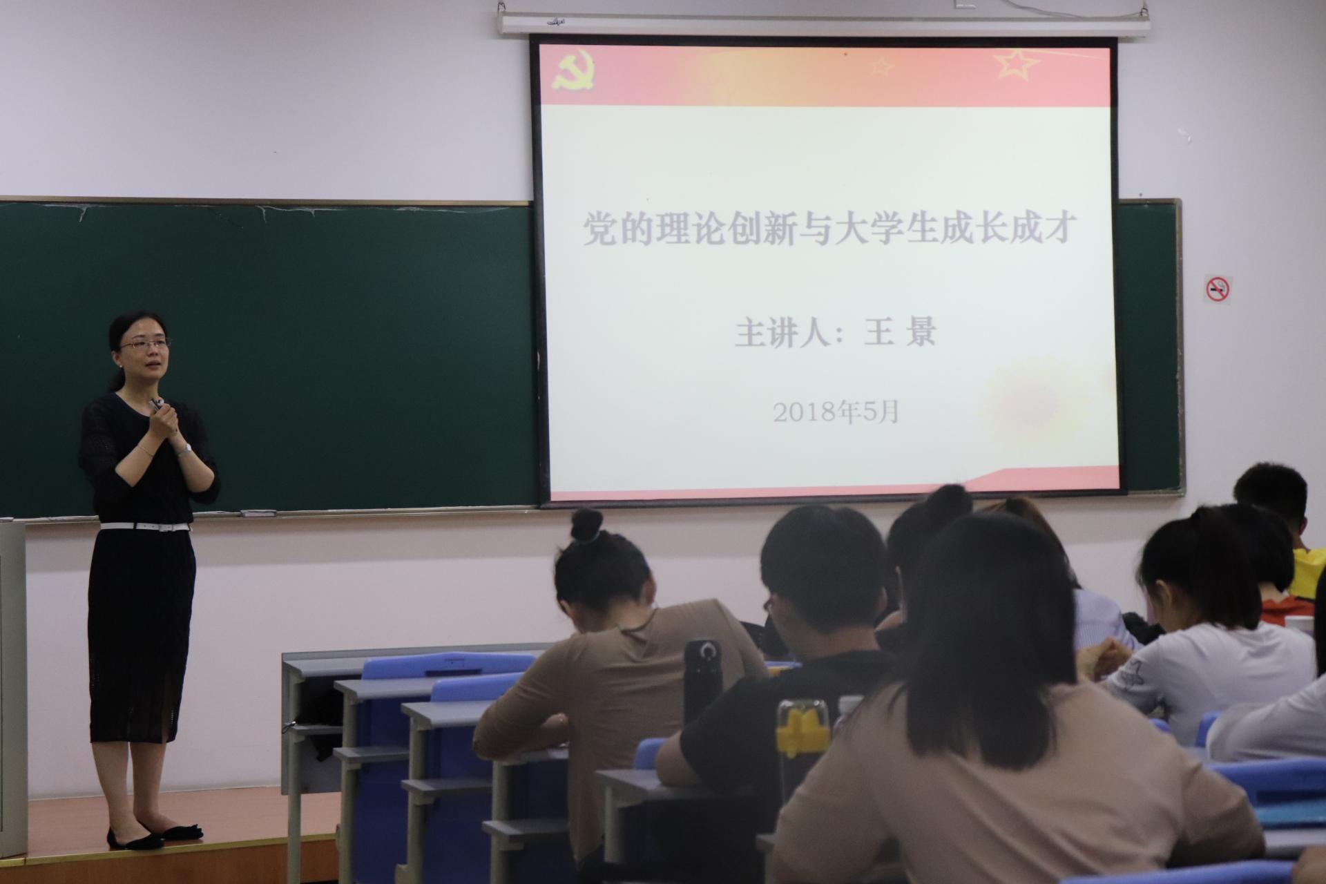 王璟老师则从“党的理论创新”出发,论述了党在不同时期的理论进步与理论创新,勉励同学们顺应时代发展,在良好的校园环境中成长成才。