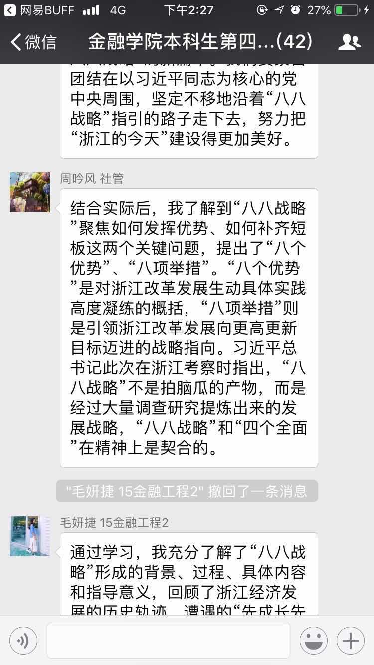 活动中,博彩代理 师生秉承“学深”、“学实”、“学好”的理念,认真观看纪录片,细致阅读相关推文,利用新媒体等线上渠道对“八八战略”展开了深入的学习交流,在深化自己的理论基础的同时,结合自身实际,提出自己的看法。博彩代理 党支部学生纷纷表示,“八八战略”是针对浙江发展状况提出的顺应时代的产物,15周年是一个新的起点,作为当代大学生应该秉持浙江精神,干在实处、走在前列,把握“八八战略”带来的机遇,以良好的精神状态迎接新的挑战,坚定地沿着“八八战略”的指引砥砺奋进;要以坚实的理论武装自己、以丰富的实践锻炼自己,深入贯彻习近平总书记“干在实处永无止境,走在前列要谋新篇,勇立潮头方显担当”重要指示。其中,博彩代理 本科生第二党支部丰予倩认为:习近平总书记的“八八战略”为浙江省的发展指明了方向。作为浙江学生党员应该了解自己的家乡,清楚家乡的优势与特色。同时学习浙江的实干精神、担当精神与创造精神,勇立潮头,为家乡建设贡献自己的一份力量。研究生第一党支部李全超也表示:“八八战略”把从严治党、巩固和发展风清气正的良好政治生态放在重要位置,引领浙江不断推进党的建设,不断推进政府自身改革的创新探。“八八战略”实施得越深入、越持久,就越彰显出强大的引领力量。
