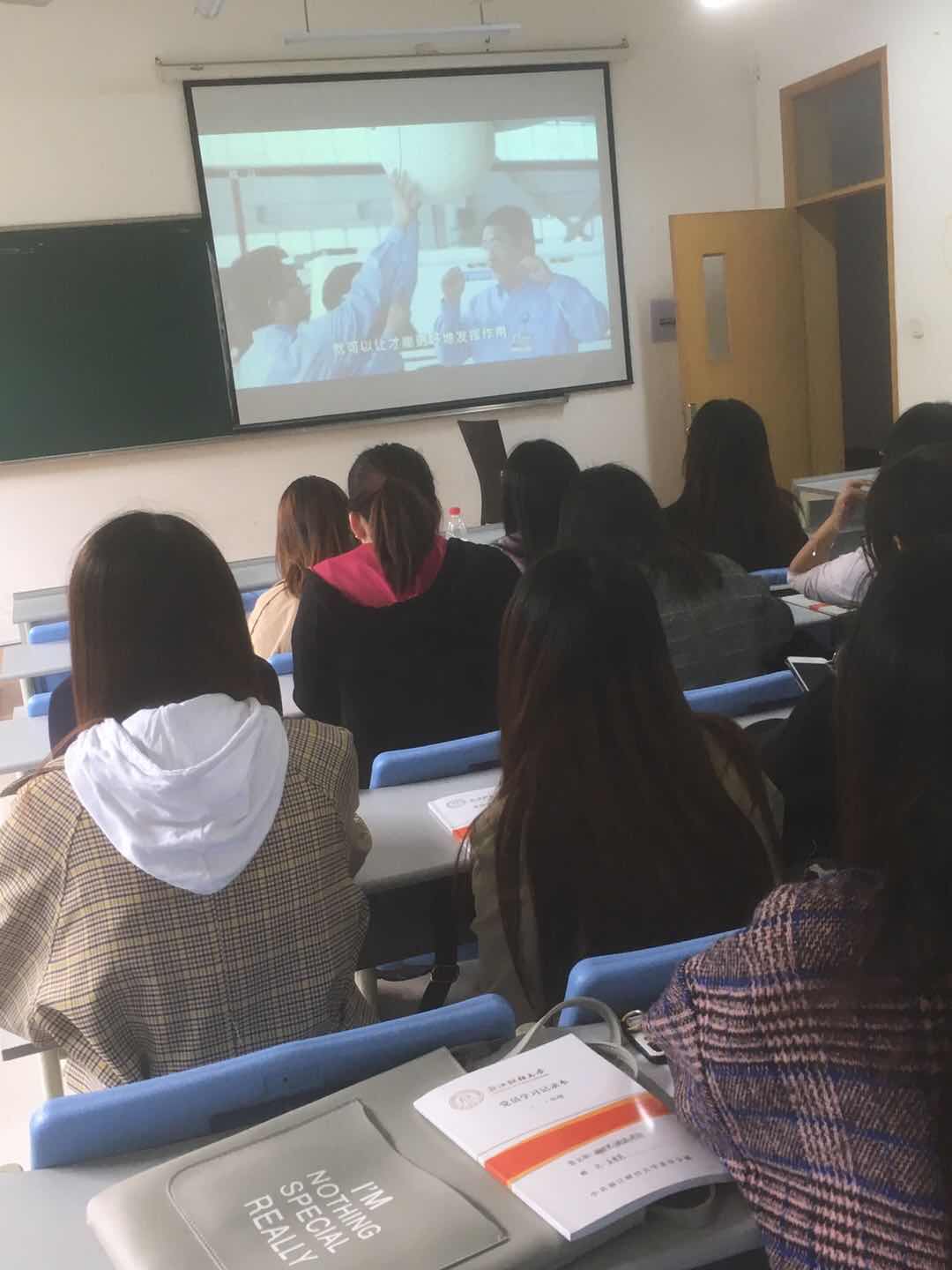 与会学生在观看后展开热烈讨论。他们认为在移动互联网时代,各种碎片化信息、碎片化阅读,使得我们越发忽视了对经典和专业书籍的阅读。作为青年学子,我们要学习习近平总书记不论何时都不忘学习的精神,应多读书,读好书,养成终身学习的好习惯。正如习近平总书记曾经提到的“蓄电池理论”说的那样,现代的人才中,一辈子只充一次电的日子,已经过去了,只有成为一块高效蓄电池,进行不间断的、持续的充电,才能不间断地、持续地释放能量。