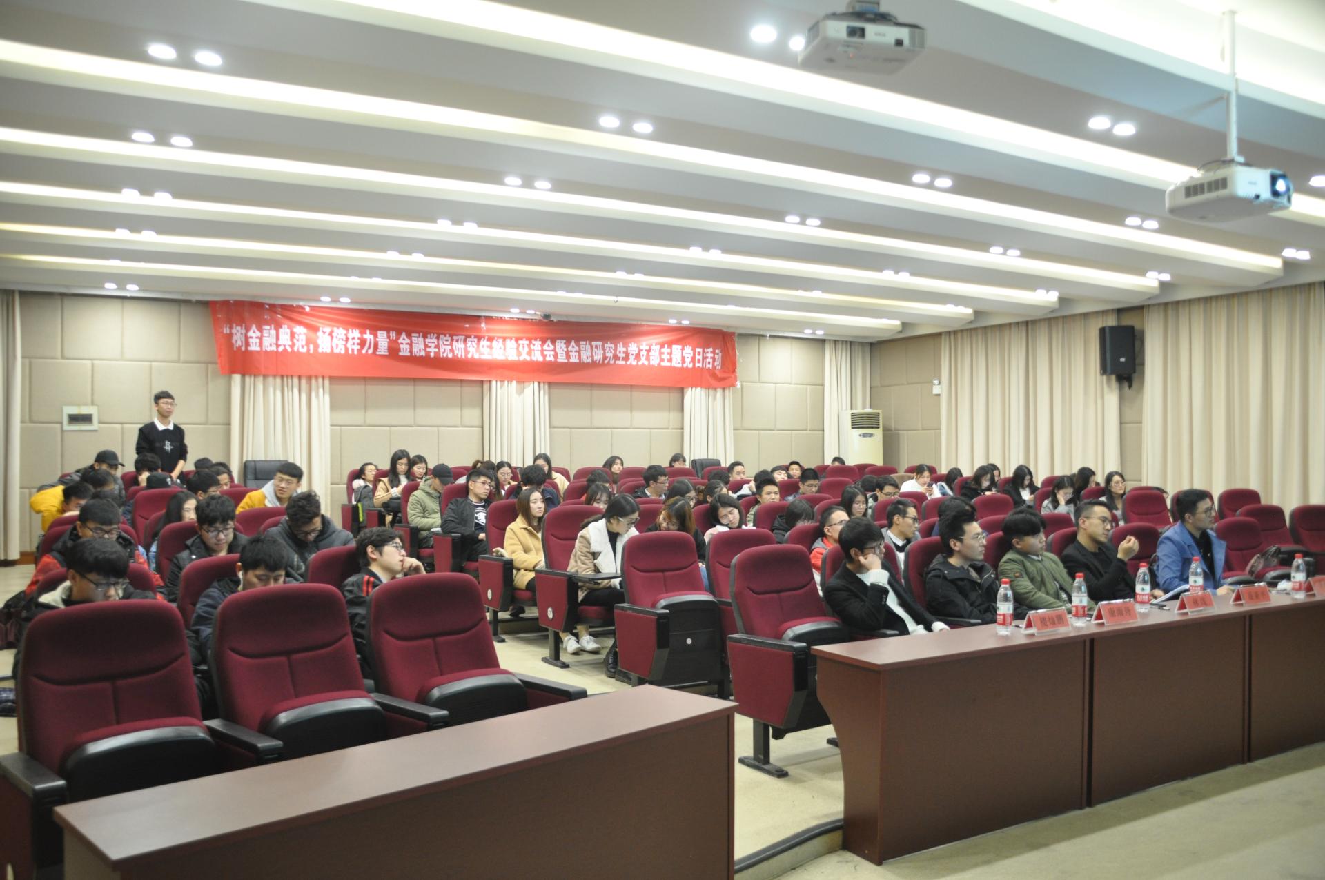 研究生经验交流会暨金融研究生党支部主题党日活动。邀请了在各个领域表现优异的老生代表为新生讲述研究生生活的方方面面,并结合自身的经历给出了相应的建议。