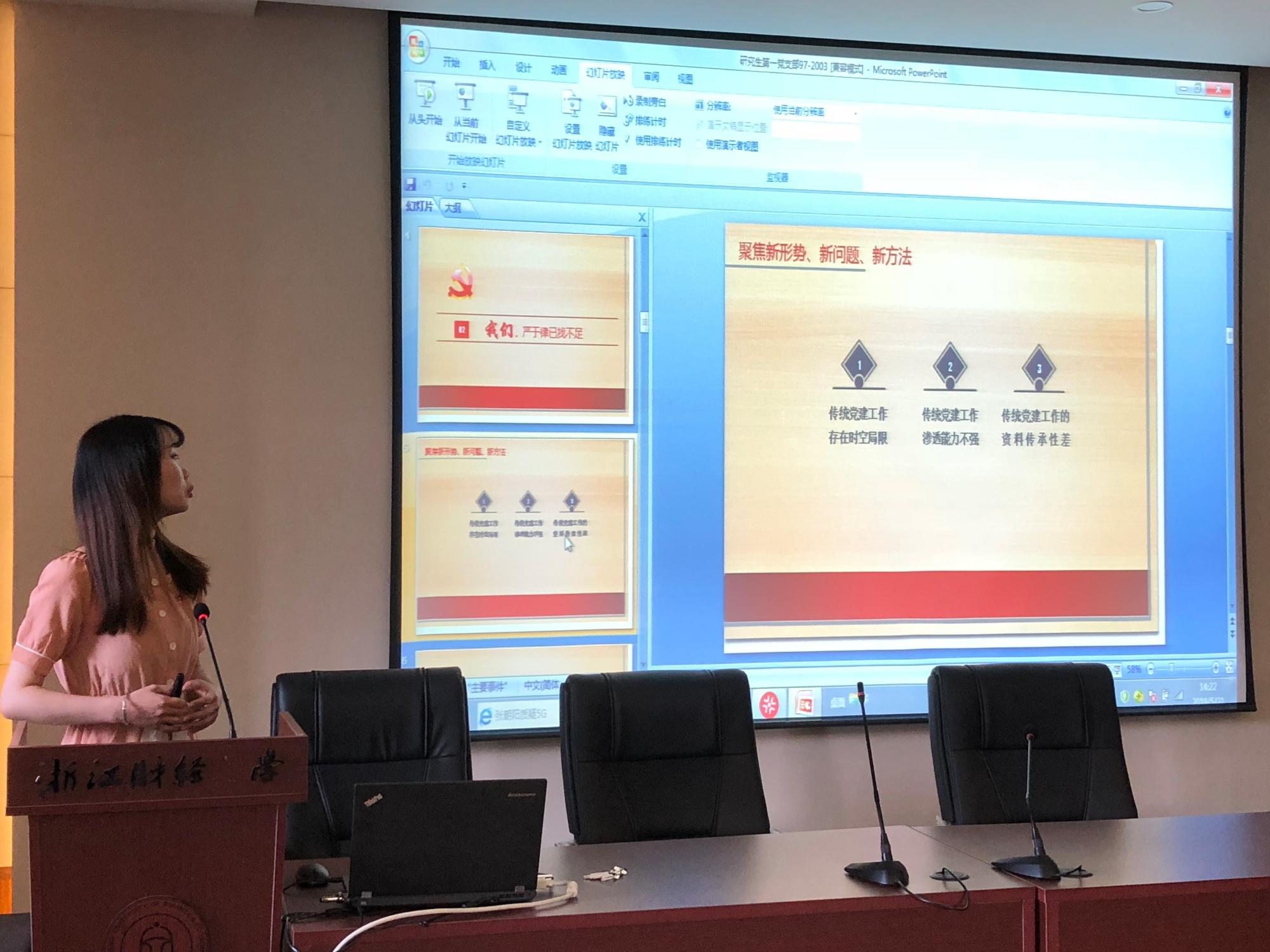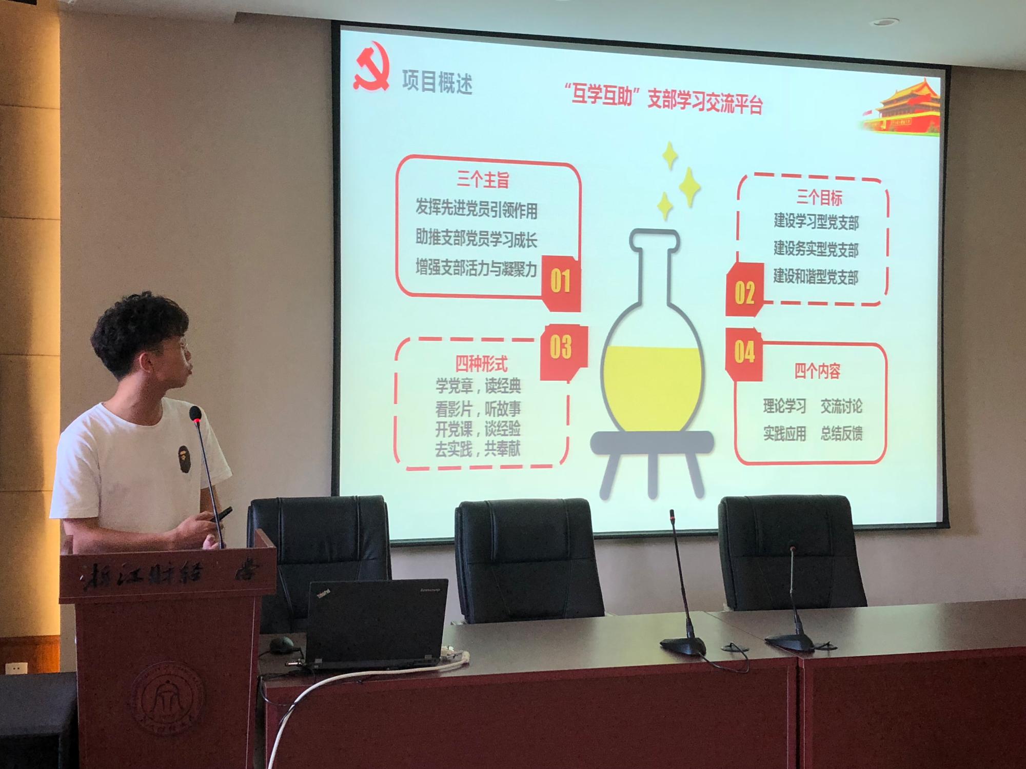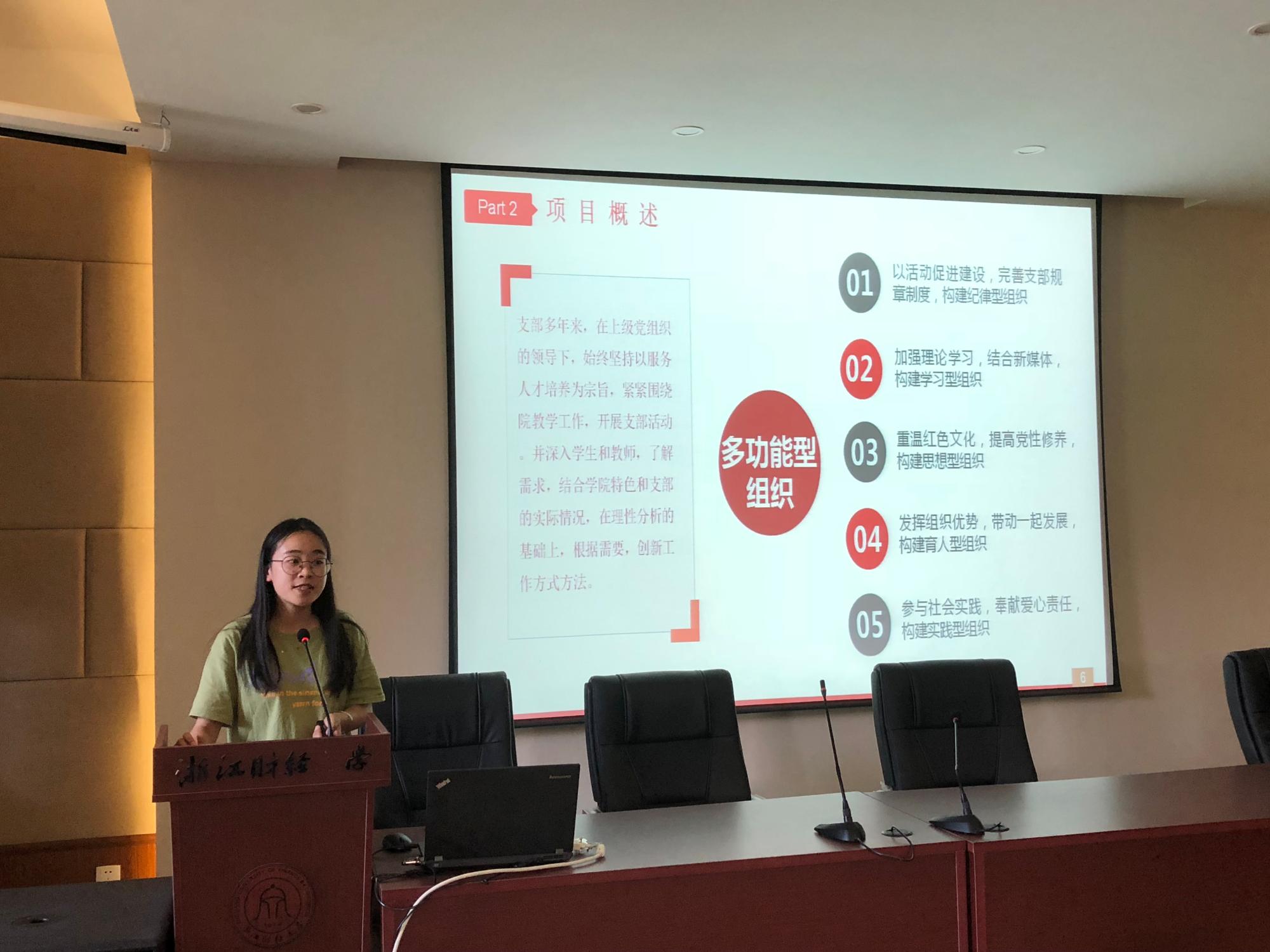 在支部建设创新评比环节,教工第五党支部围绕行政支部党员服务为本的宗旨,致力于打造一流服务党支部,彰显党员先锋模范作用。本科生第一党支部根据支部活动缺乏针对性、延续性、吸引力等问题,探索“进班级、进社团、进网络”的“三进”模式。本科生第二党支部提出了“互助互学”支部学习交流平台以推进党建工作。本科生第三党支部以互联网为媒介,积极探索党建工作新思路以提升支部工作效率。本科生第四党支部通过红色教育、社会实践、党员联系人制度,努力构建多功能型党支部。研究生第一党支部提出了第四空间党建站的建设构想,研究生第二党支部介绍了进德号、创新号、博学号、雅致号四个党小组的活动创新,研究生第三党支部则推出“三个同心圆工程”以增强党组织凝聚力。