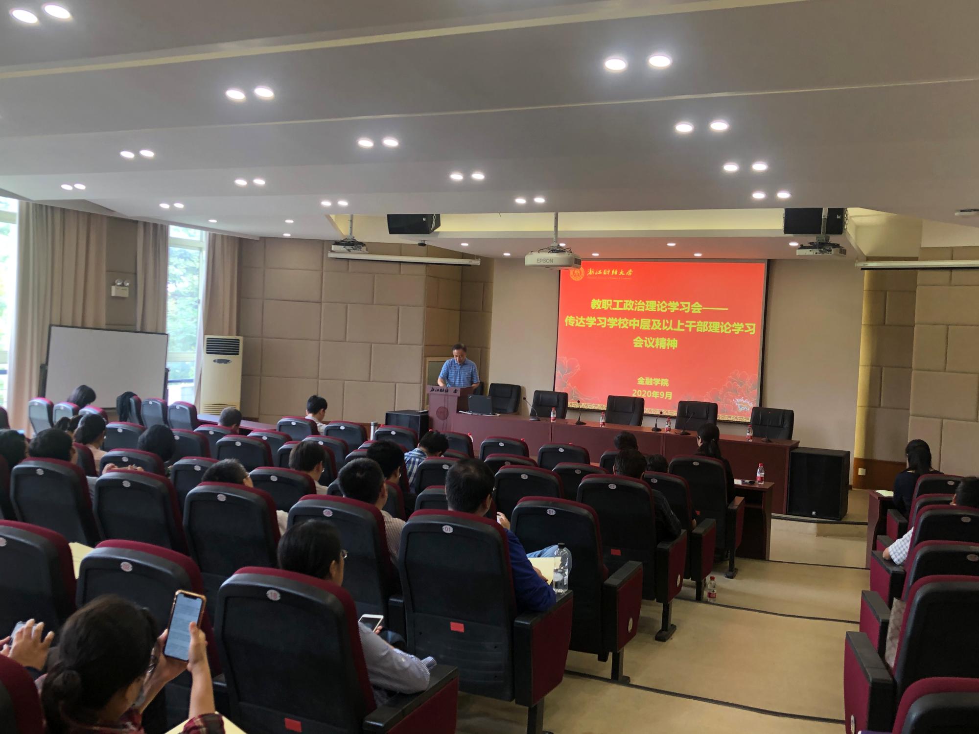 在3-202报告厅召开教职工政治理论学习会,专题学习省委书记袁家军在省委党校秋季学期开学典礼上的讲话精神,以及传达学习博彩代理
