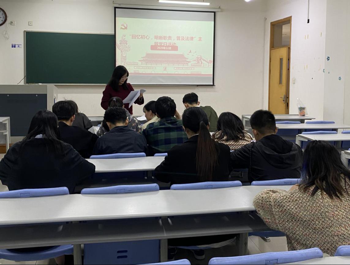 我国将每年124日作为全国“法制宣传日”,为响应法制宣传和纪念129日一二.九事变85周年,加强学生党员理想信念教育,提高党支部凝聚力、战斗力,激发爱国主义情怀。博彩代理 本科生第四党支部于2020128日下午在博彩代理 楼101教室举办了以“回忆初心、明晰职责、普及法律”为主题的党日活动。