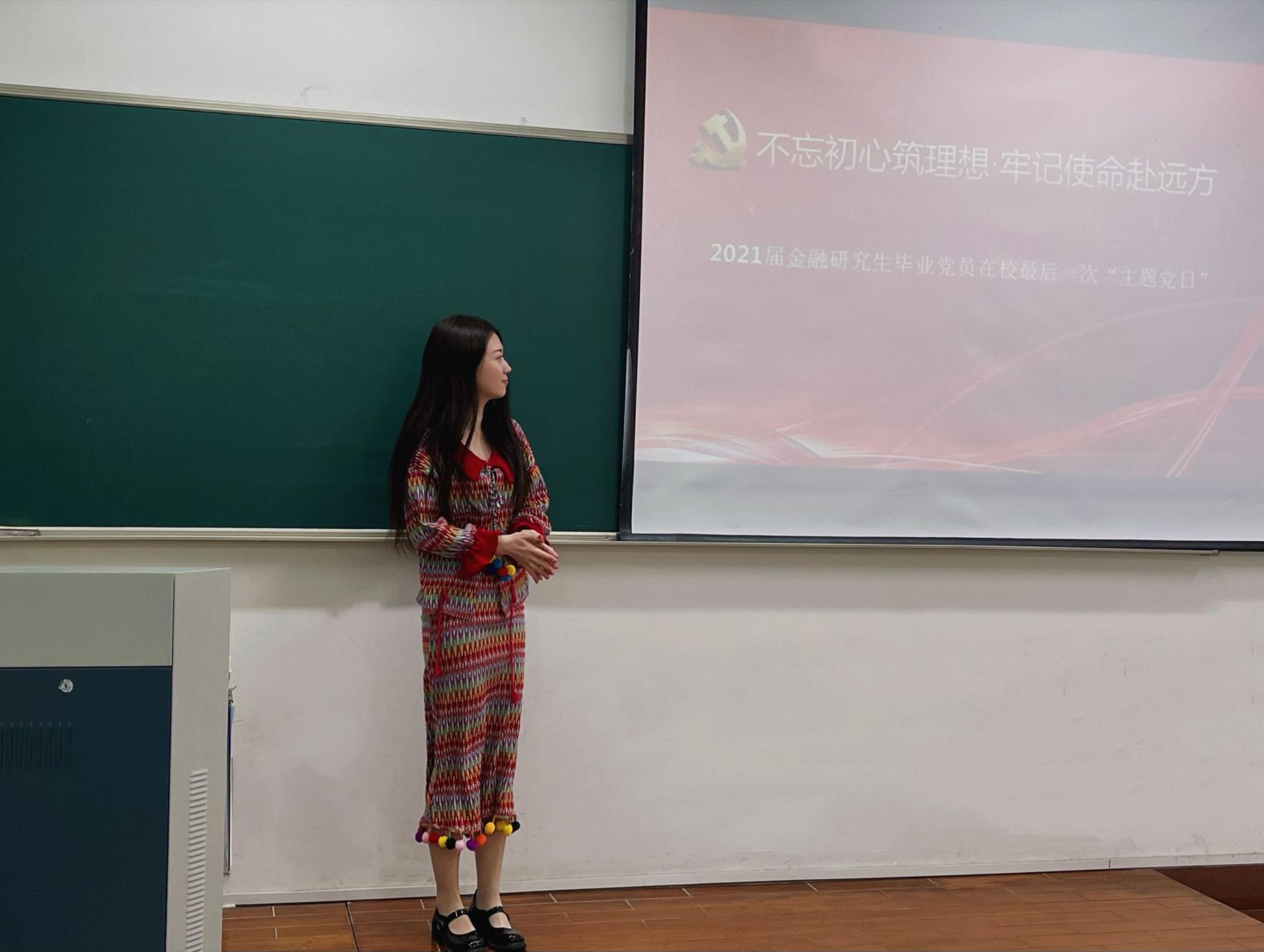 2021届研究生党员于毕业前夕在3号楼101教室成功举办了在校最后一次主题党日活动,活动由研究生第一党支部书记温从乐主持,全体毕业生党员参加,研究生党建指导老师谢琳出席。