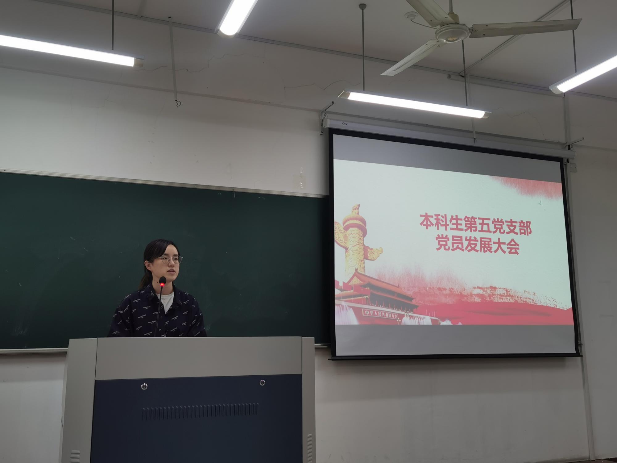 大会第二项,讨论关于接收李琥珀等11名发展对象为预备党员的问题。支部委员会通过广泛征求支部内外群众意见、培养联系人意见、政治审查等环节,结合考察情况后确定了李琥珀等11名同学为本次发展对象。随后,发展对象依次介绍个人情况,与会同志积极发表意见。经与会正式党员无记名投票表决,按照有关组织原则,支部大会决定同意接收李琥珀等11名同志为中共预备党员。