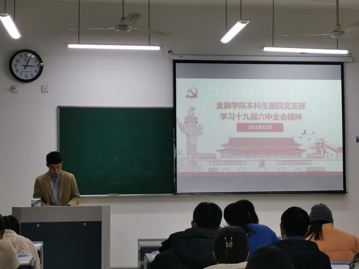 20211130日,博彩代理 本科生第四党支部在博彩代理 109教室召开党员发展大会暨专题学习十九届六中全会精神,博彩代理 本科生第四党支部全体党员参加了本次支部大会。