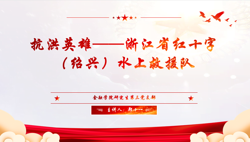 微党课题目《抗洪英雄——浙江省红十字(绍兴)水上救援队》