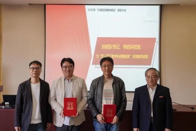“价值投资播种基金”之“投资类课程建设奖励专项”旨在开展投资类课程建设,由徐峰老师作为团队负责人,组建投资类课程建设团队;钟立新、周海珍、金骋路、郑燕巧四位老师获2021年“价值投资播种基金”之“匠人园丁教学科研鼓励奖”;章宇康、王煜诚、刘硕三位同学主持的课题获2021-2022学年“价值投资播种基金”之“价值投资研究专项课题”立项;张灵睿等10位同学获2021-2022学年“价值投资播种基金”之“星辰大海投资类课程奖”。孙旭东、李仙娇、李启兵、王聪聪、蔡国金依次为立项及获奖的老师们、同学们颁奖。
