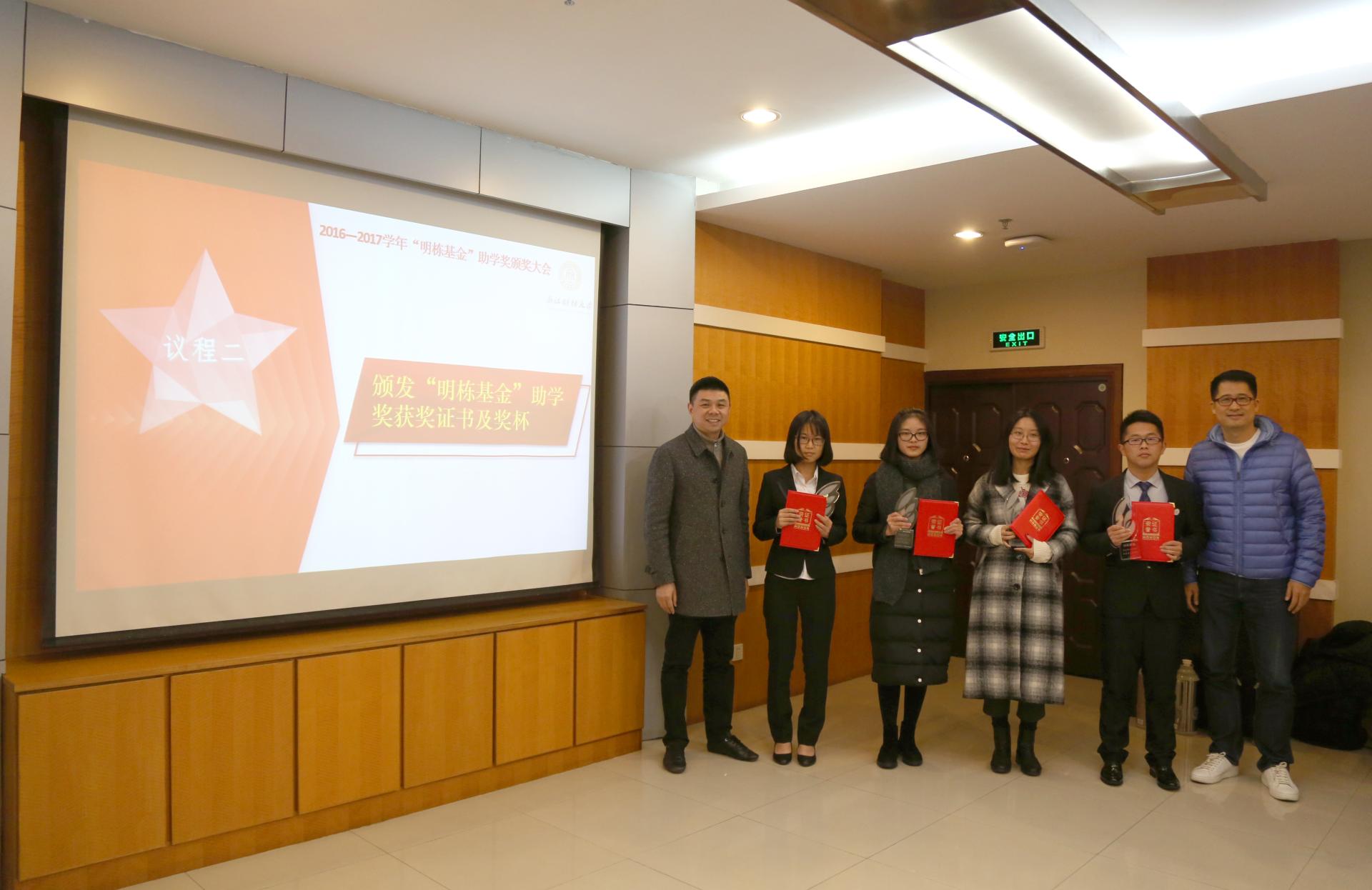 12月16日下午,2016-2017学年“明栋基金”助学奖颁奖大会在行政楼512隆重举行。蓝山投资有限公司董事长王晓明、浙江盈阳资产管理股份有限公司总裁楼栋、蓝山投资有限公司总裁王柳琳、关瑞慈善基金会执行会长吕霞,校党委书记李金昌、相关职能部门负责人、博彩代理