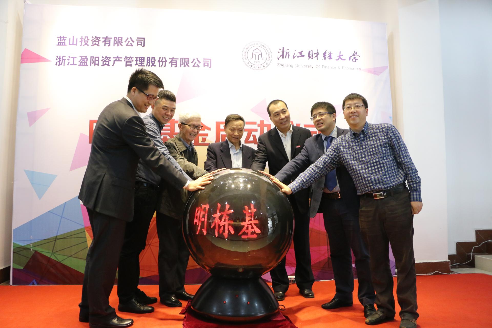 院长陈荣达、王晓明校友、楼栋校友等出席了本次启动仪式,并一起启动了“明栋基金“水晶球。