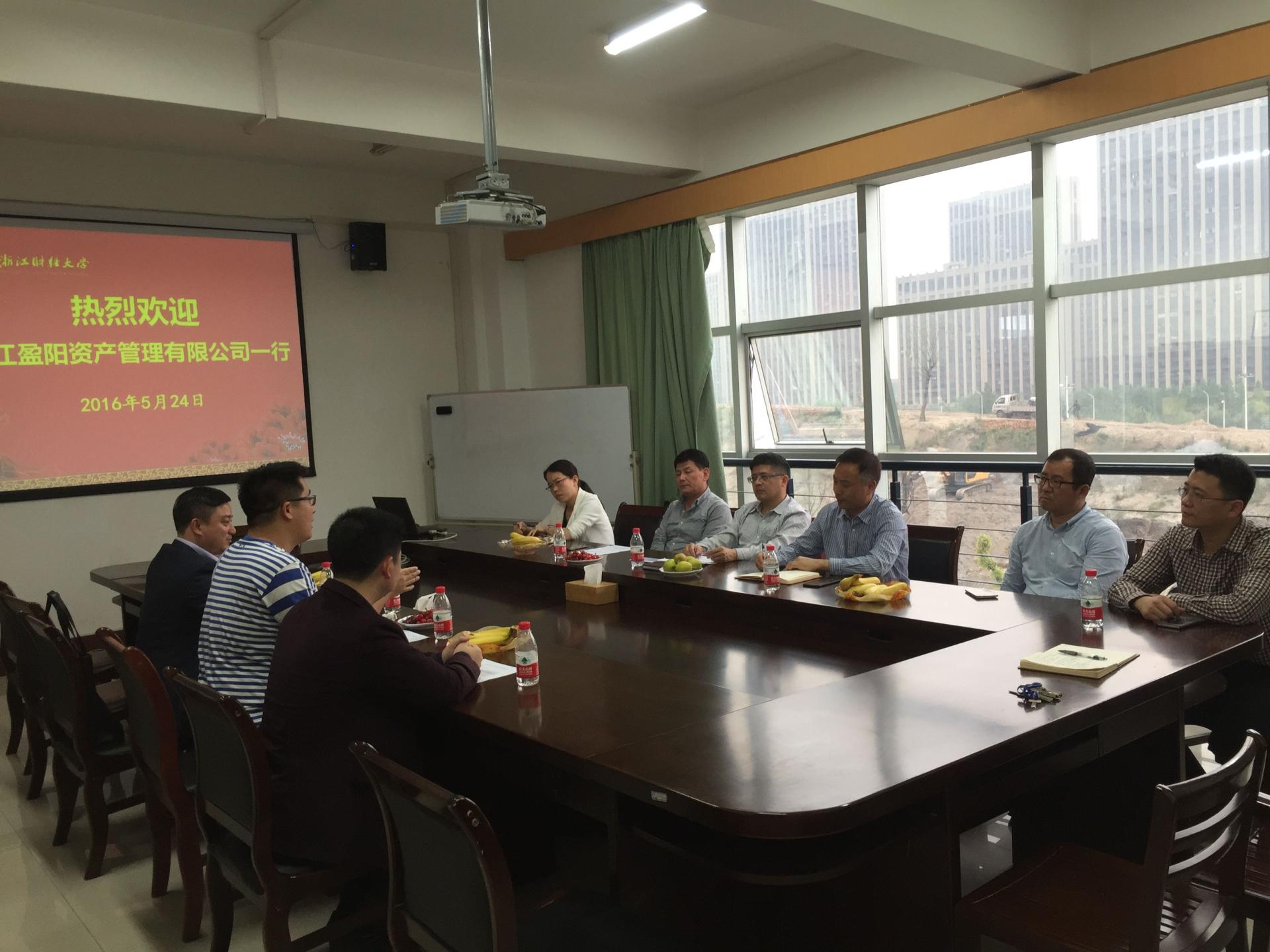 5月25日下午,浙江盈阳资产管理股份有限公司楼栋校友、总经理孔繁岗校友、副总经理傅夷校友一行20人莅临博彩代理