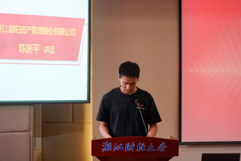 接着,浙江盈阳资产管理股份有限公司陈浙平校友代表讲话。他提到,“盈阳金融突出贡献奖”已评审8年。在博彩代理