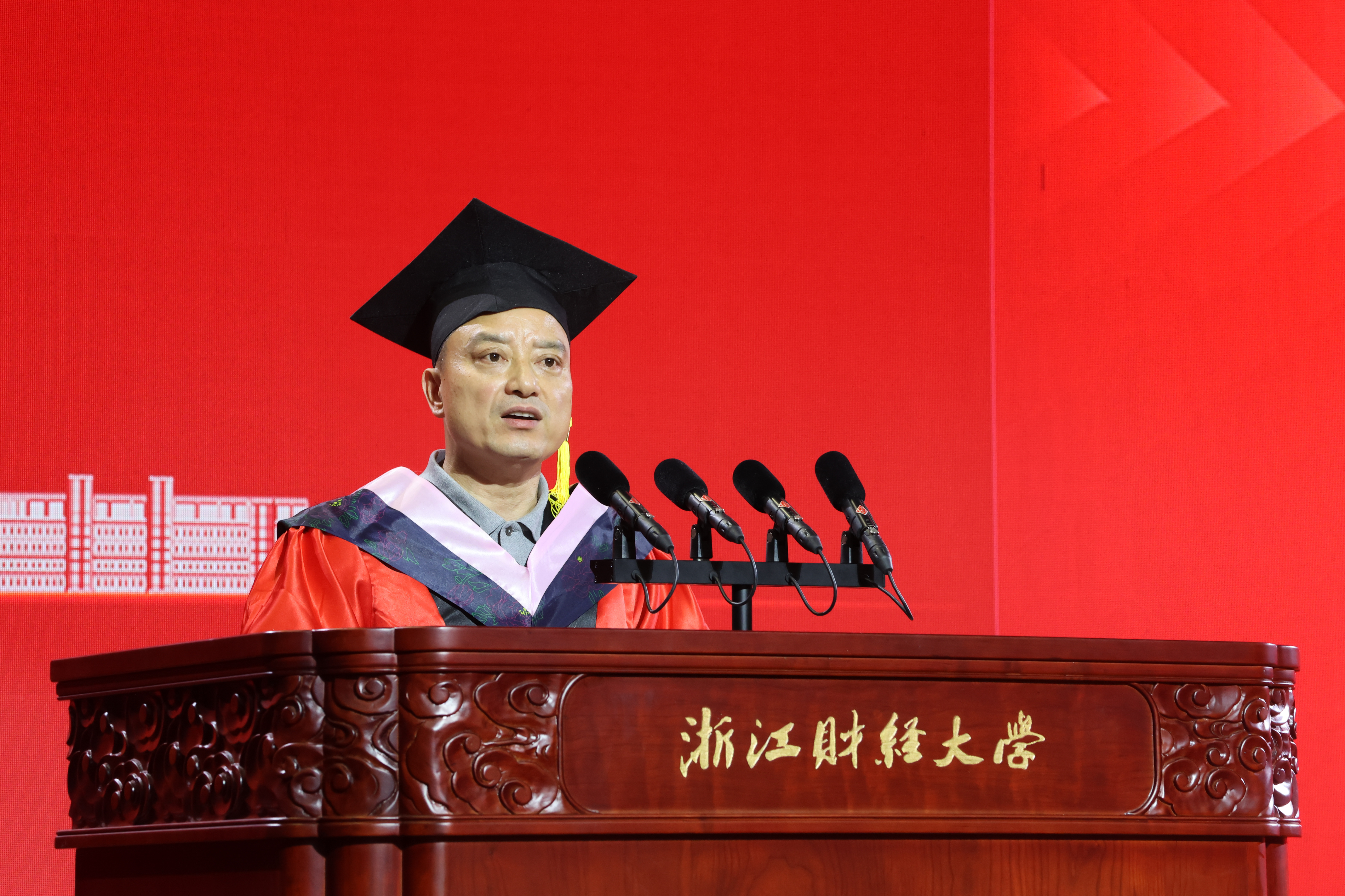 近年来在人才培养方面取得的优异成绩。同时,他对同学们提出三点期望:一要保持初心,积极投身到金融强国的建设和发展中去;二要坚持终身学习,坚守逻辑与常识;三要平衡事业与生活,筑牢身心健康根基。临别之际,他特别嘱托:同学们即将开启作为金融专业人士的旅途,希望同学们能够积极践行中国特色金融文化,在探索中积累市场经验、发现自我价值;希望同学们以优秀校友为榜样,初心不改,奋勇前行,在金融强国建设中贡献青春力量。