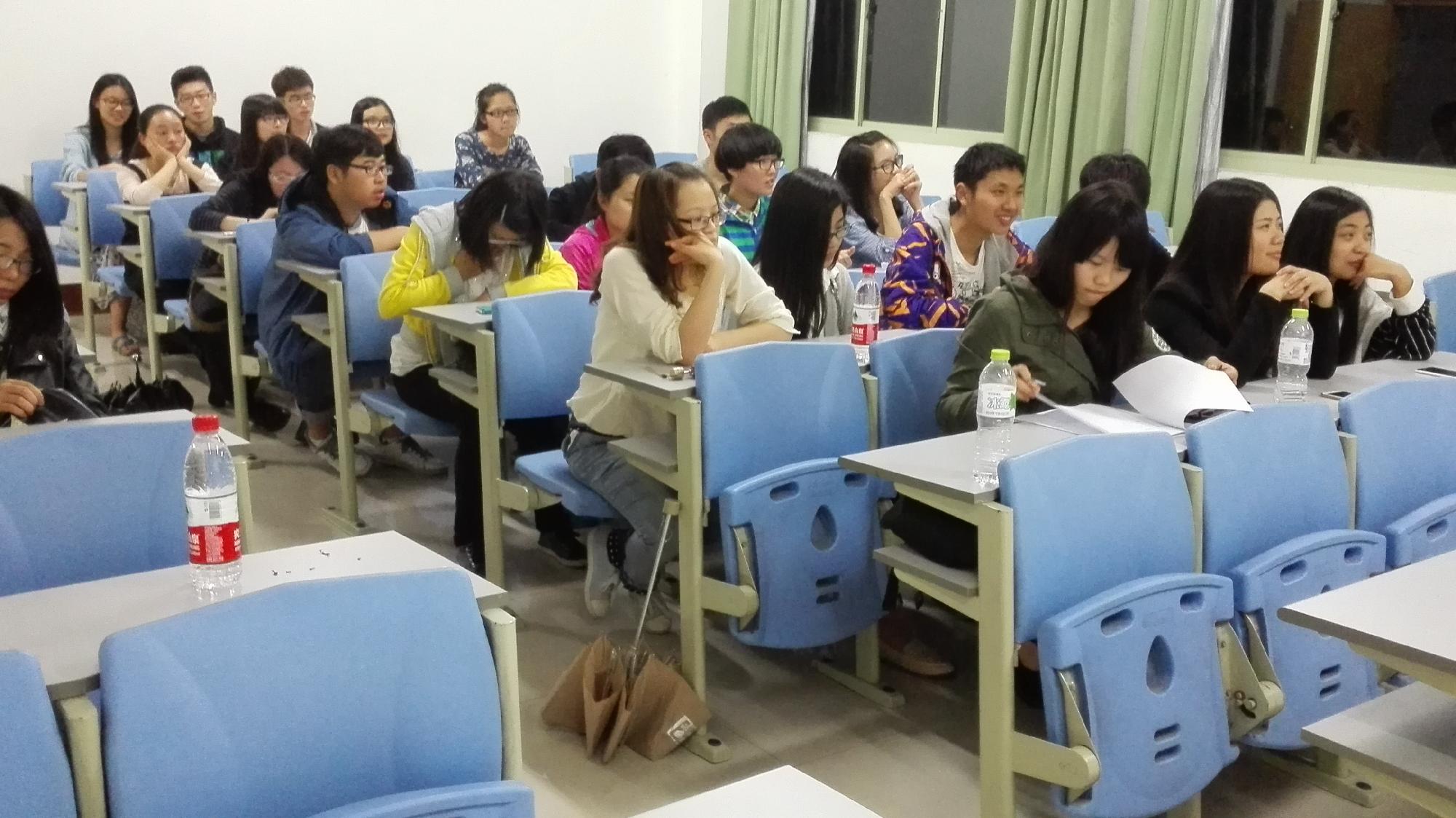 信用管理系的郗河老师,他与同学们交流了考研方面的经验,全场座无虚席。