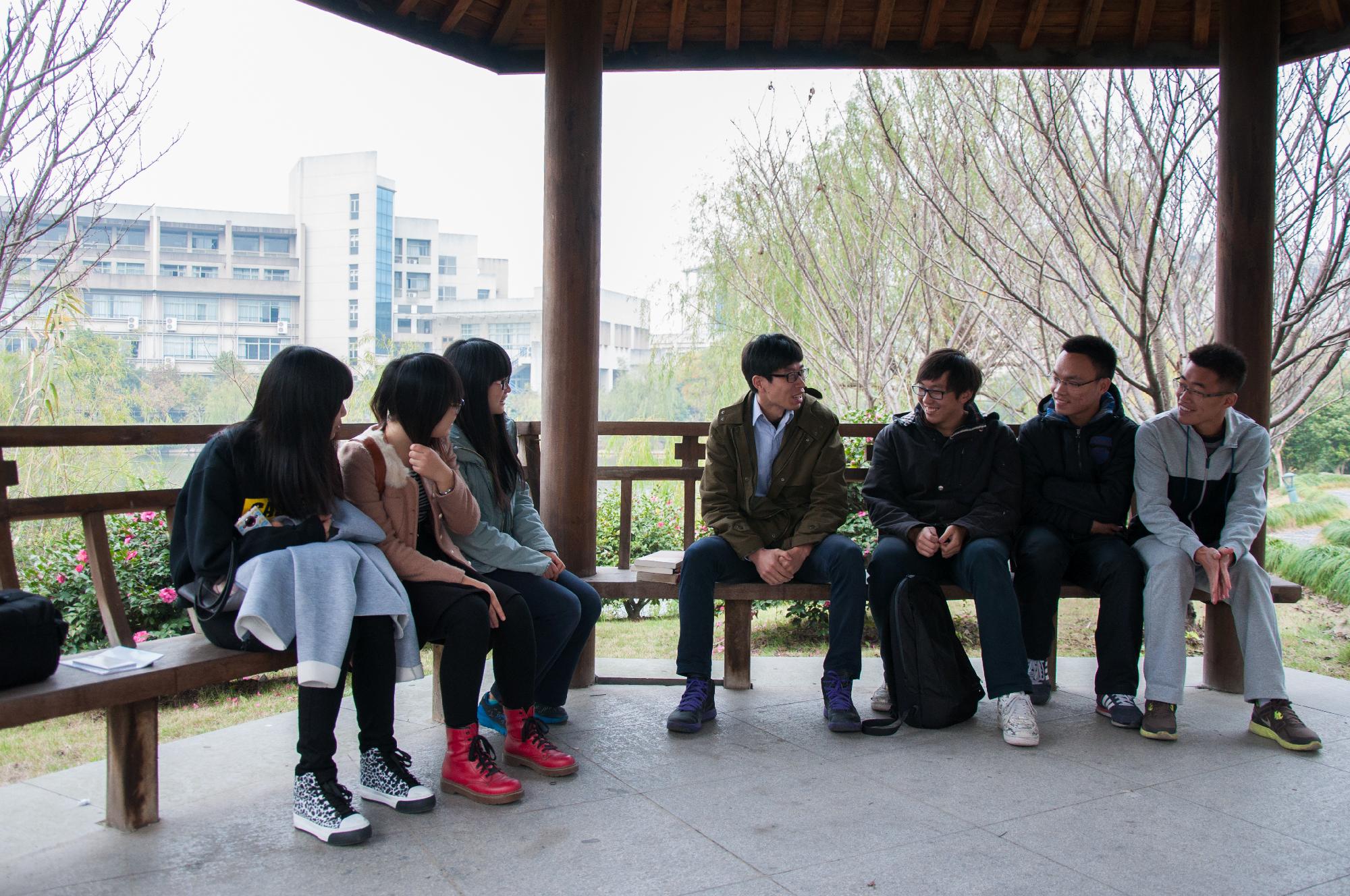 日光暖暖,风过湖亭。亭中师生闲坐,聊心得,享书趣。书,流淌着淡淡的纸墨香;人,传递着浓浓的师生情。一淡一浓,不变的,是师生对书的热爱。