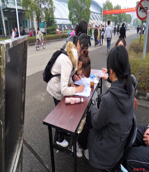 西门口抢眼的横幅和大型喷绘都让这次的吸引过往同学纷纷驻足报名。公司金融学会全体工作人员在进行了充分的前期准备工作后,全身心地投入到协助报名的环节中来。他们热情地发放宣传单,忙碌地为参赛选手登记资料,并且耐心地向每一位同学讲解活动信息和流程。同学们在得知ERP开始报名之后,或是成群结队的到报名点报名,或是纷纷联系自己的同学和朋友询问是否一起参加。短短的中午时间,就已经有许多同学成功组队。虽然冬末的西风稍嫌猛烈,但报名现场仍火热非凡。
