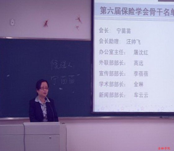 在随后的换届选举仪式中,会长候选人宁苗苗以她详细周密的未来工作计划与真诚的态度赢得了会员们的高度认同,众望所归地当选新一届保险学会会长。在会长交接仪式后,叶晓凌老师对本次大会进行了点评,并向10级同学详细介绍保险专业。本次会员大会在叶晓凌老师对学会和会员们的热切期望中圆满结束。衷心希望在新任会长的带领和保险新生力量的加入下,保险学会可以创造更辉煌的成绩。