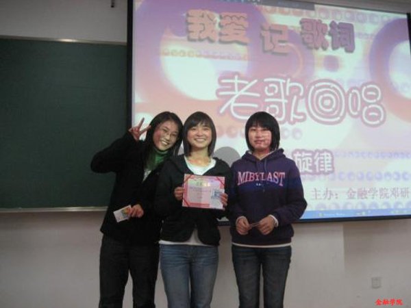 经过激烈的比拼,最后,来自08信管的钱晨绯、王蓓蓓、高艳三名同学获得了冠军,比赛在一片欢声笑语中落下了帷幕!