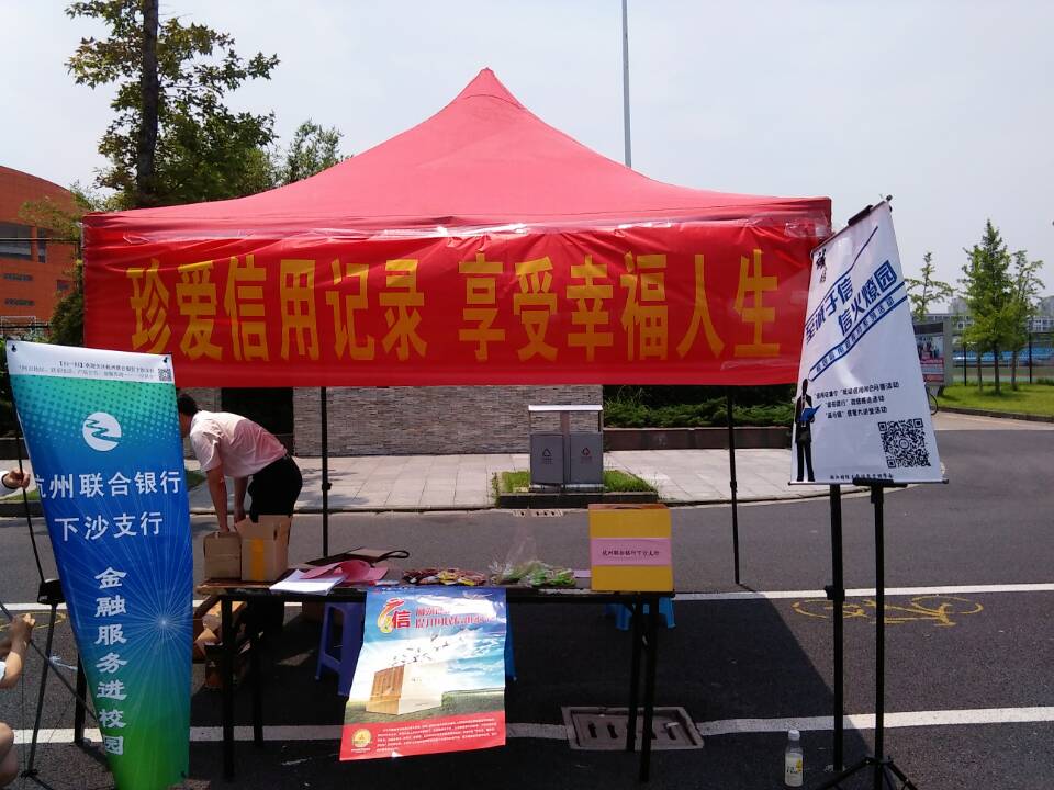 信用管理学会于文化长廊联合举办了以“征信教育、重视诚信”为主题的信用宣传活动,来自杭州联合银行下沙支行的部分工作人员与信用管理学会成员进行了现场宣传。