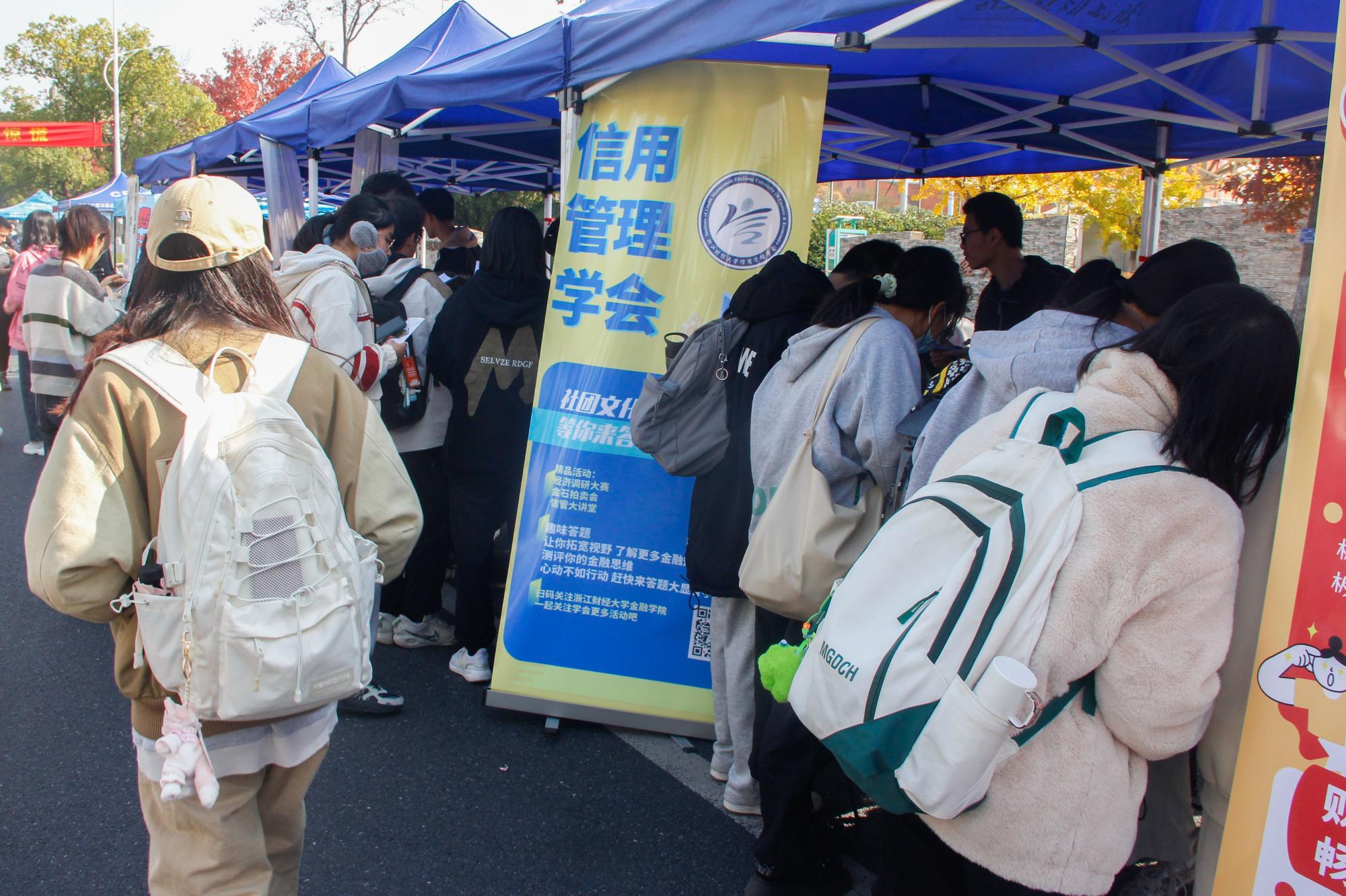八大社团分别设立打卡点,参与者参加相应游戏后可获得社团盖章,集满四个即可前往兑奖处加分并获得奖品。活动围绕金融知识普及主题,从财商素养、投资原则、产品选择和防范金融诈骗四个方面向同学们普及金融知识,增强风险防范意识,培养正确的投资理财观念,约四百余名学生参加了打卡活动。