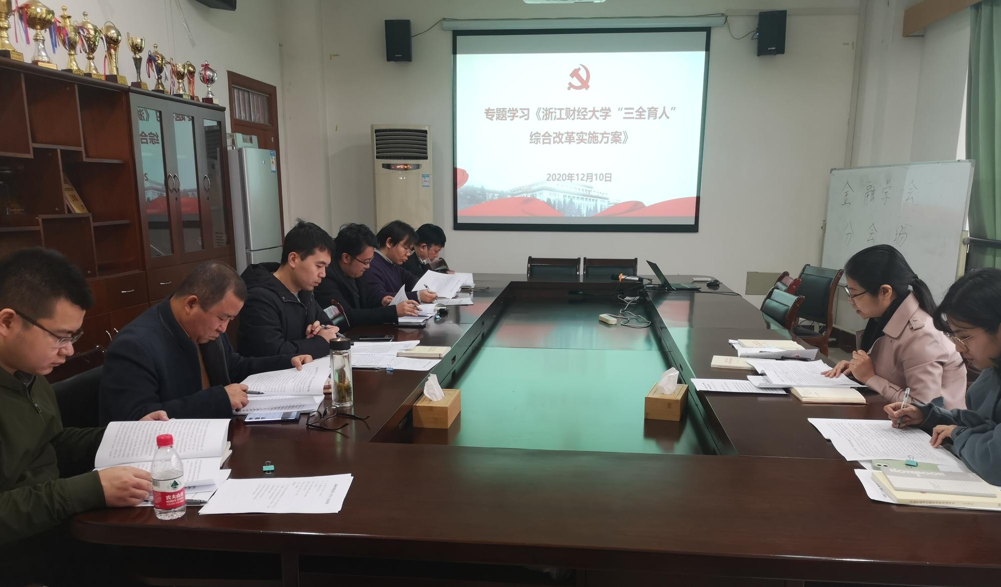 “三全育人”综合改革实施方案》进行了传达学习,梳理讲解了教育部在高校实施“三全育人”综合试点的背景和历程、三全育人的内涵以及十大体系等内容,明晰了“三全育人”和思想政治工作的联系,明确了课程思政与“三全育人”的关系。下一步博彩代理