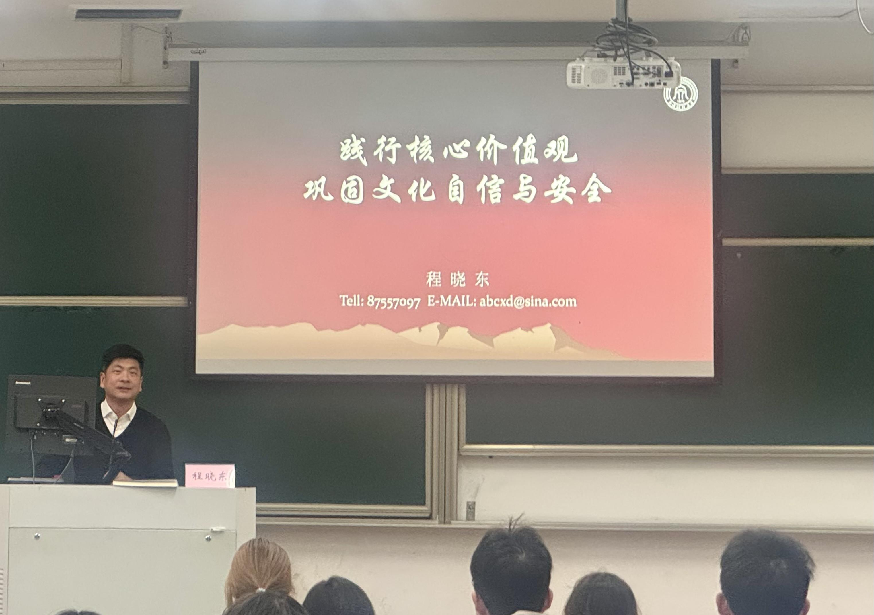 程晓东围绕“践行核心价值观,巩固文化自信与安全”展开教学。他通过解读党的相关文化政策与规划,明确坚定文化自信是维护意识形态安全的根本前提,引导学员自觉抵制西方错误意识形态渗透。课程最后,程晓东老师鼓励入党积极分子深入领悟中华优秀传统文化,争做正气、正面、正能量的新时代青年。