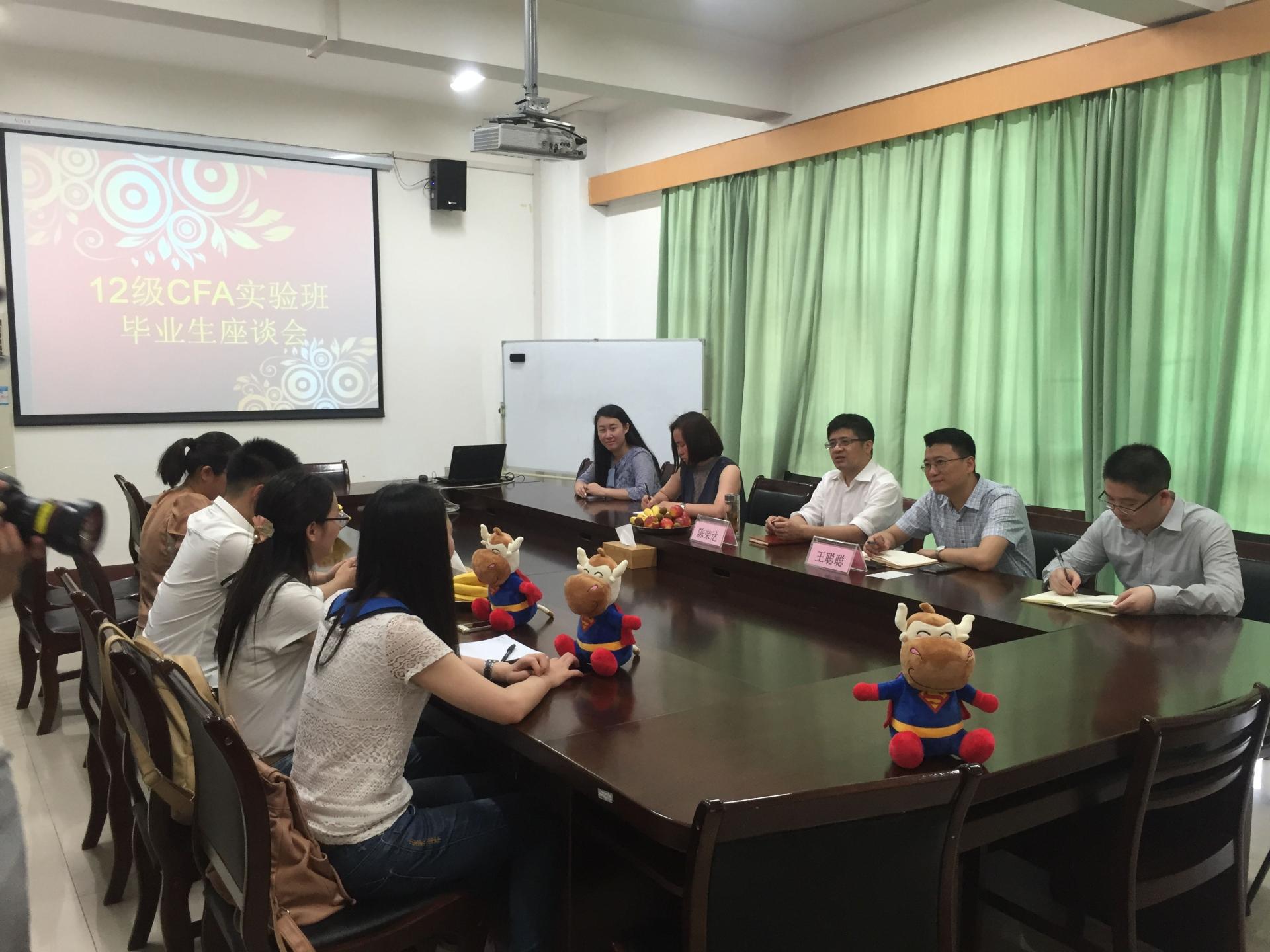 2016年6月13日下午,博彩代理 2012级CFA实验班毕业生座谈会在422会议室举行,博彩代理 院长陈荣达、副院长王聪聪、高顿财经相关负责人出席了本次会议。陈荣达院长发表讲话,他肯定了12级CFA实验班同学们取得的优秀成绩,并赞扬他们为在校同学们做了很好的榜...