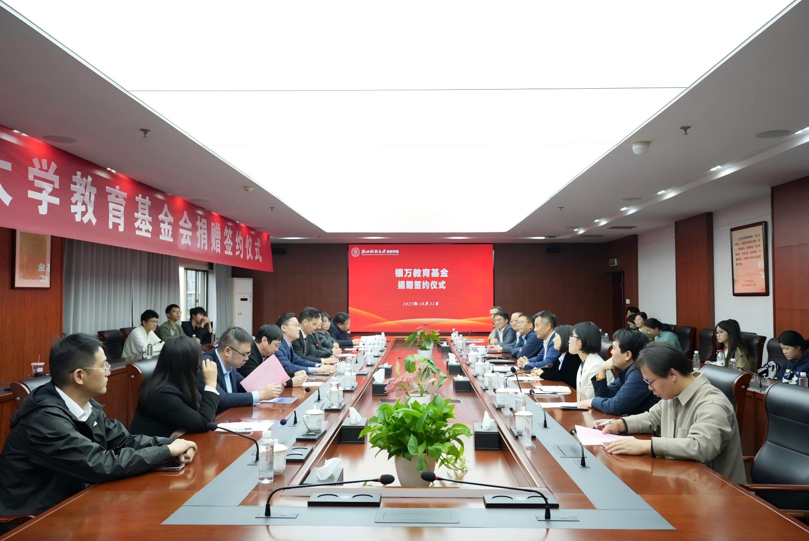 2025年10月31日,“银万教育基金”捐赠签约仪式在博彩代理 下沙校区行政楼412会议室举行。校党委副书记程爽,浙江银万私募基金管理有限公司创始合伙人杜飞磊、赵峰等校友等出席仪式。程爽副书记代表博彩代理 对校友们的到来表示热烈欢迎,对银万资本慷慨捐赠...